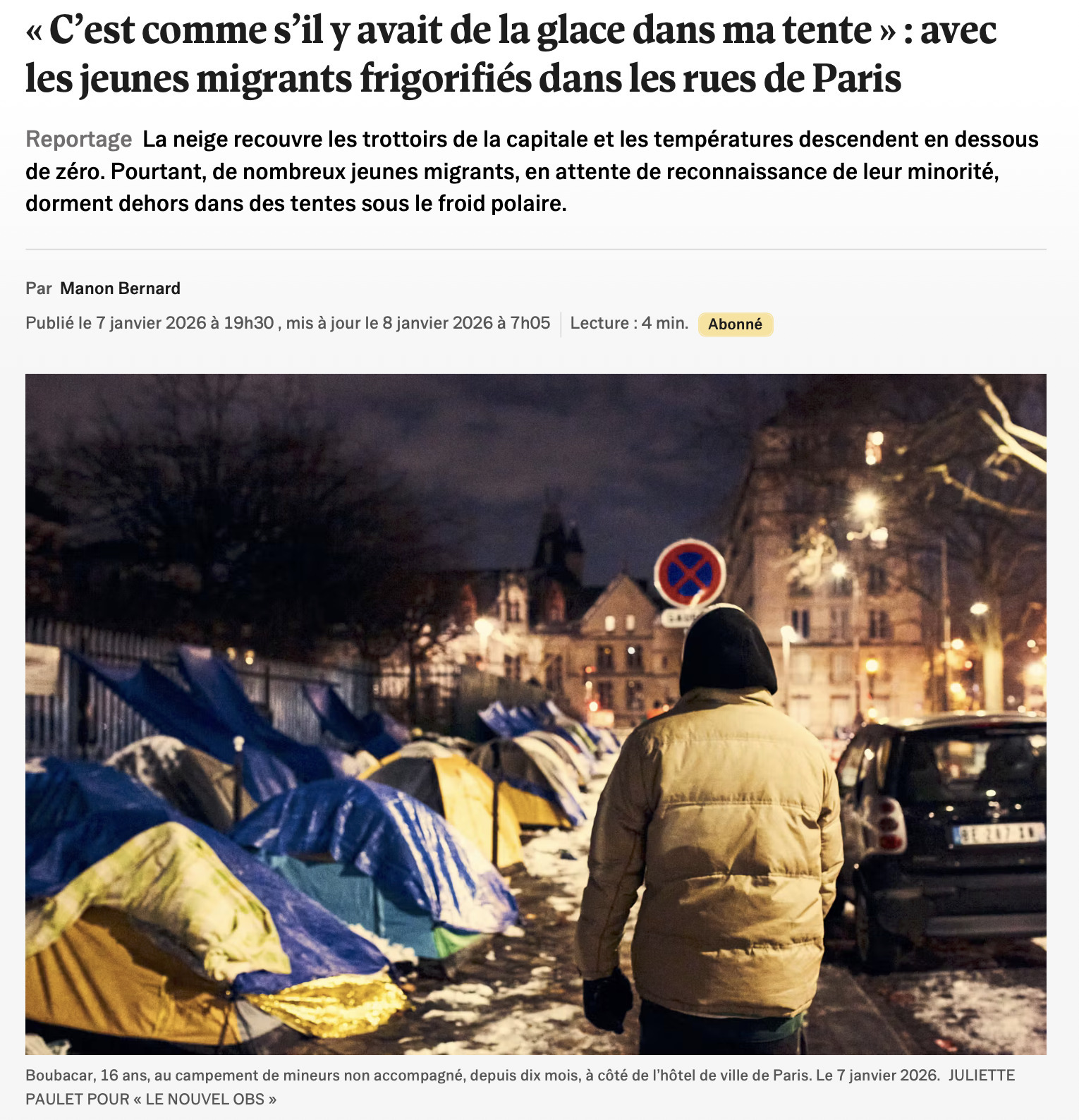 Reportage pour le Nouvel Obs, 7 janvier 2026, » Suivez ce lien